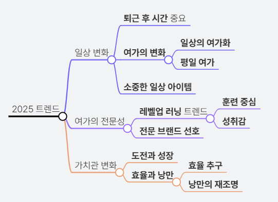 2025년의 트렌드는 '평일, 전문성, 낭만'으로 요약될 수 있으며, 이는 현대인의 일상과 여가, 가치관의 변화를 반영합니다. 특히, 퇴근 후의 시간 활용과 일상 속에서의 여가 활동이 중요해지며, 전문성을 중시하는 소비 경향이 두드러집니다. 이러한 변화는 사람들이 효율과 낭만을 동시에 추구하게 만들며, 브랜드는 이를 반영한 마케팅 전략을 세워야 할 필요성이 있습니다.